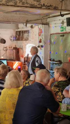 Der talentierte Sänger und Journalist Detlef Dreessen beeindruckte mit einer Mischung aus Musik und Geschichte. Mit passender Musikauswahl und historischer Moderation erinnerte er an die prägenden gesellschaftlichen Ereignisse dieser Zeit, die viele der rund 50 Anwesenden noch lebhaft in Erinnerung haben.