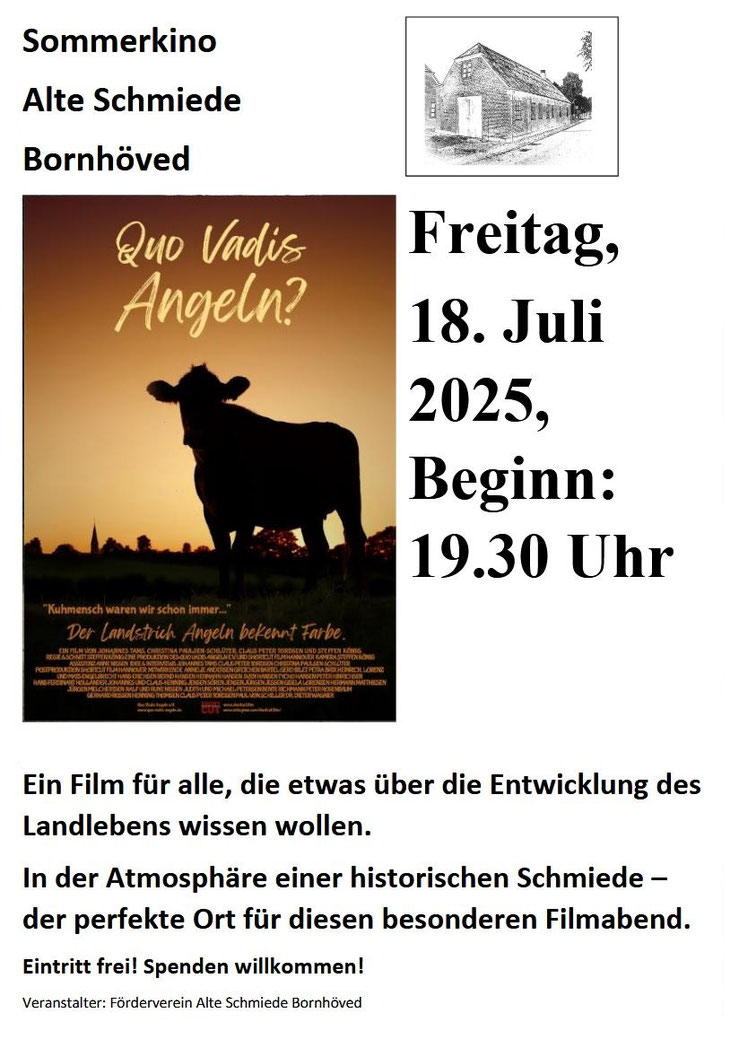 Am Freitag, den 18. Juli 2025, fand in der Alten Schmiede Bornhöved das Sommerkino mit dem Film „Quo vadis, Angeln?“ statt – und es war ein rundum gelungener Abend!
