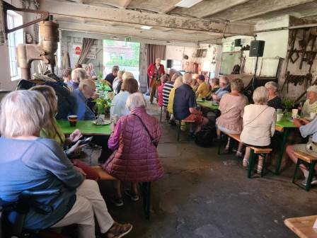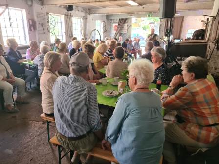 Bei Kaffee, Kuchen und Erfrischungsgetränken bot sich den Besuchern zudem reichlich Gelegenheit zum Klönen und Klatschen, sowohl in als auch vor der Alten Schmiede. Organisiert wurde die Veranstaltung vom Förderverein „Alte Schmiede Bornhöved“ in Zusammenarbeit mit dem Seniorenbeirat der Gemeinde, vertreten durch Karsten Behrends.