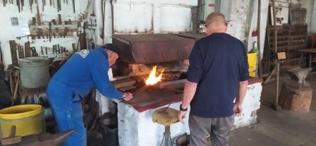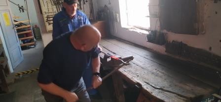 Unsere Schmiedeexperten Karsten Behrends von der Interessengemeinschaft Historischer Landmaschinen (IHL) und Keena Braun demonstrierten an Esse und Amboss den Umgang mit Feuer, Eisen und Werkzeug.